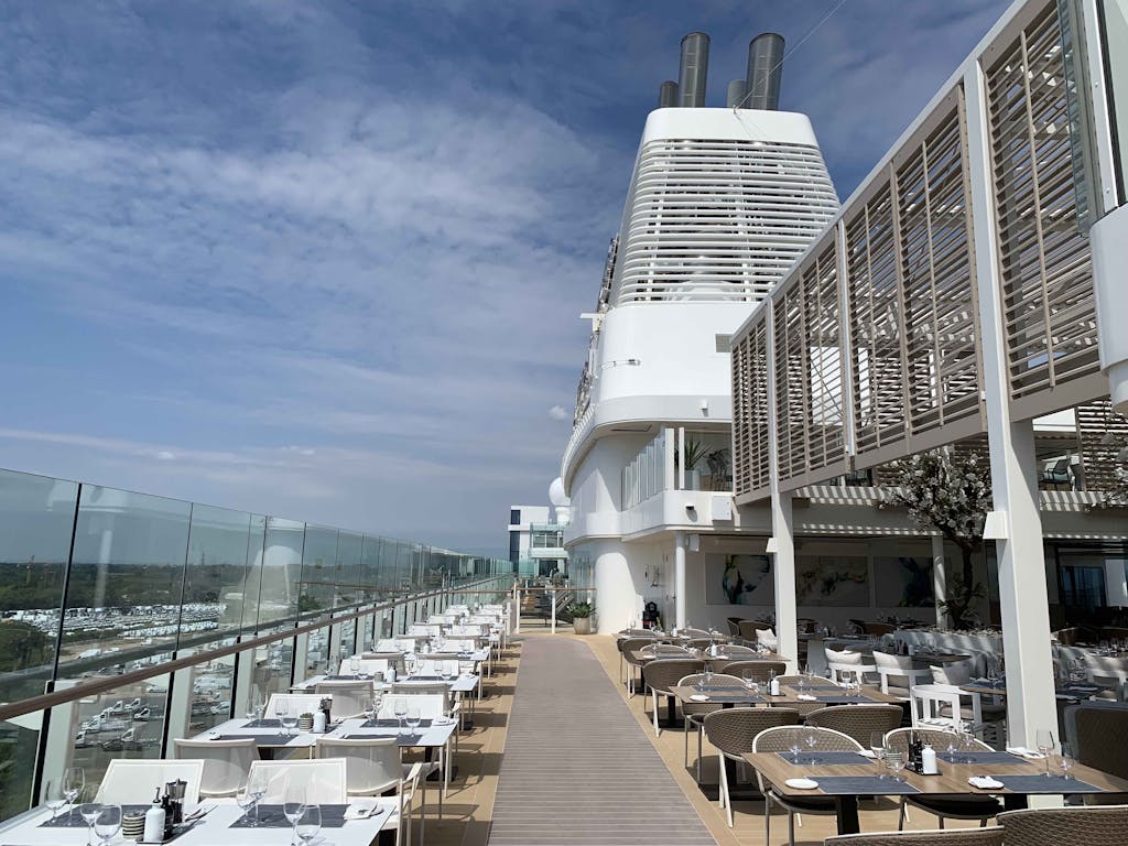 The alfresco side of the Marquee Deck, another example of emphasizing the ocean’s influence./Photo by Teijo Niemela for Silversea